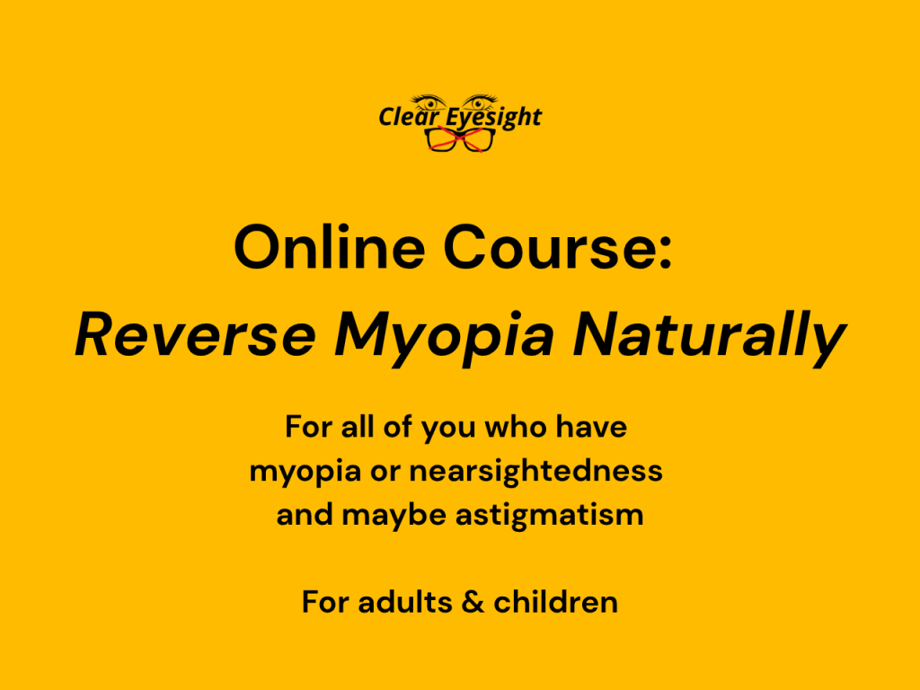 If you are a child or an adult and have poor vision at a distance (you wear a minus diopters, so you have nearsightedness or myopia) and possibly astigmatism (cylinders on your glasses) and you want to regain clear and sharp eyesight naturally, you can start with:
